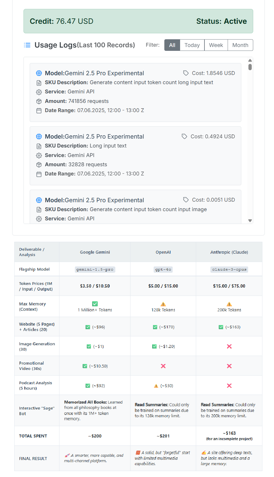- 🛡️ Secure and Transparent Control Panel: Track your API credit usage in real-time through your dedicated web panel and manage your budget without worrying about surprise bills.